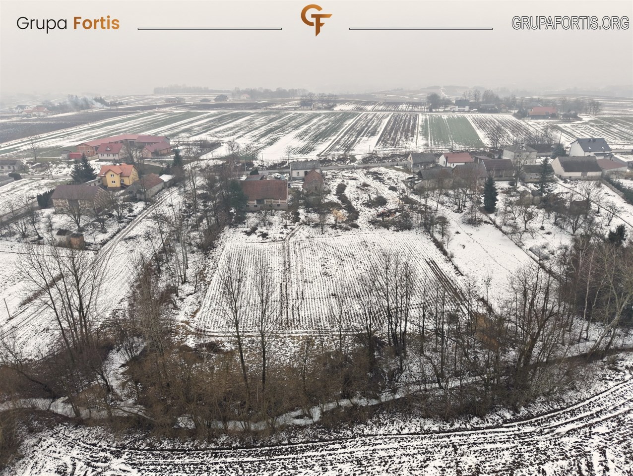 W bezpośrednim sąsiedztwie znajduje się naturalny, zadrzewiony wąwóz wśród pól — element krajobrazu i zielonej strefy. Co ważne: sprzedawany grunt biegnie dalej również za wąwozem i obejmuje jeszcze dodatkowy pas działki po jego drugiej stronie.