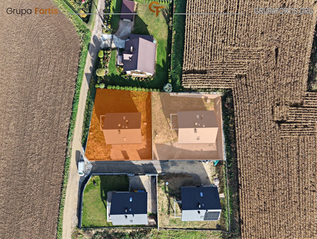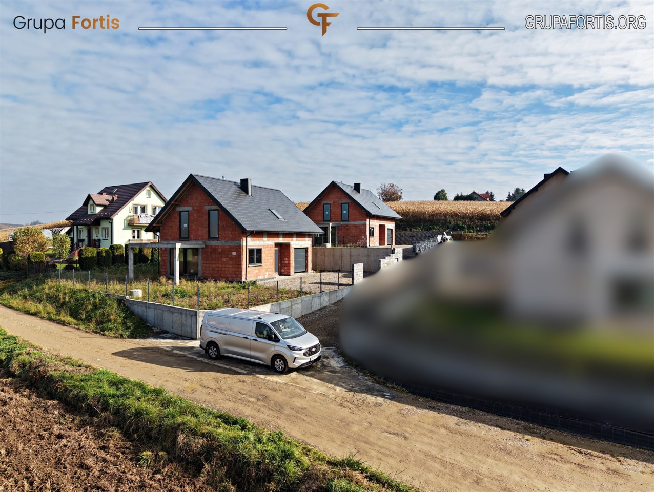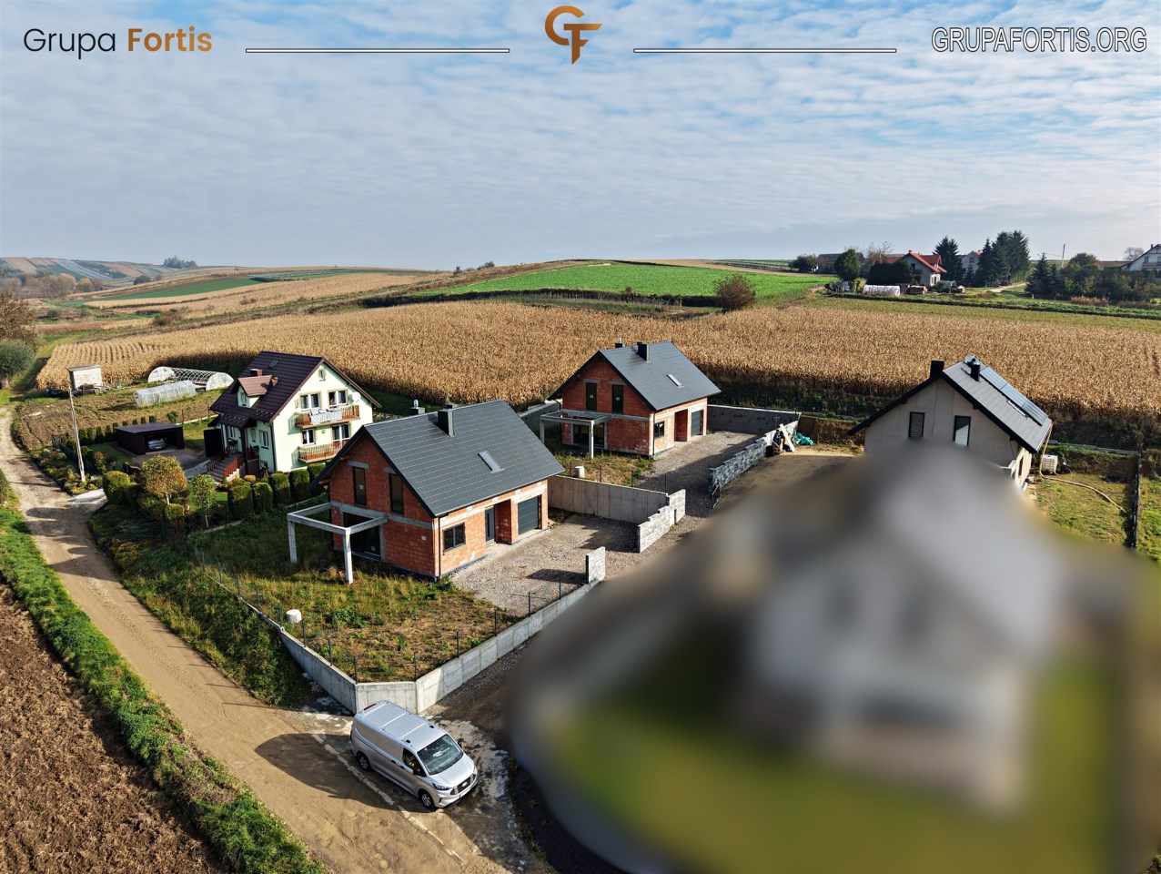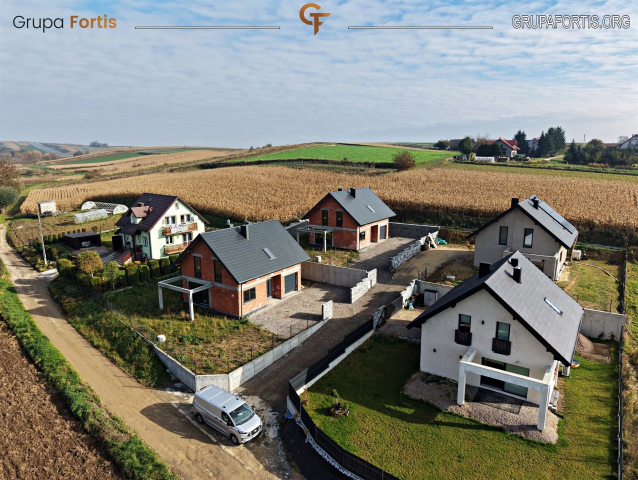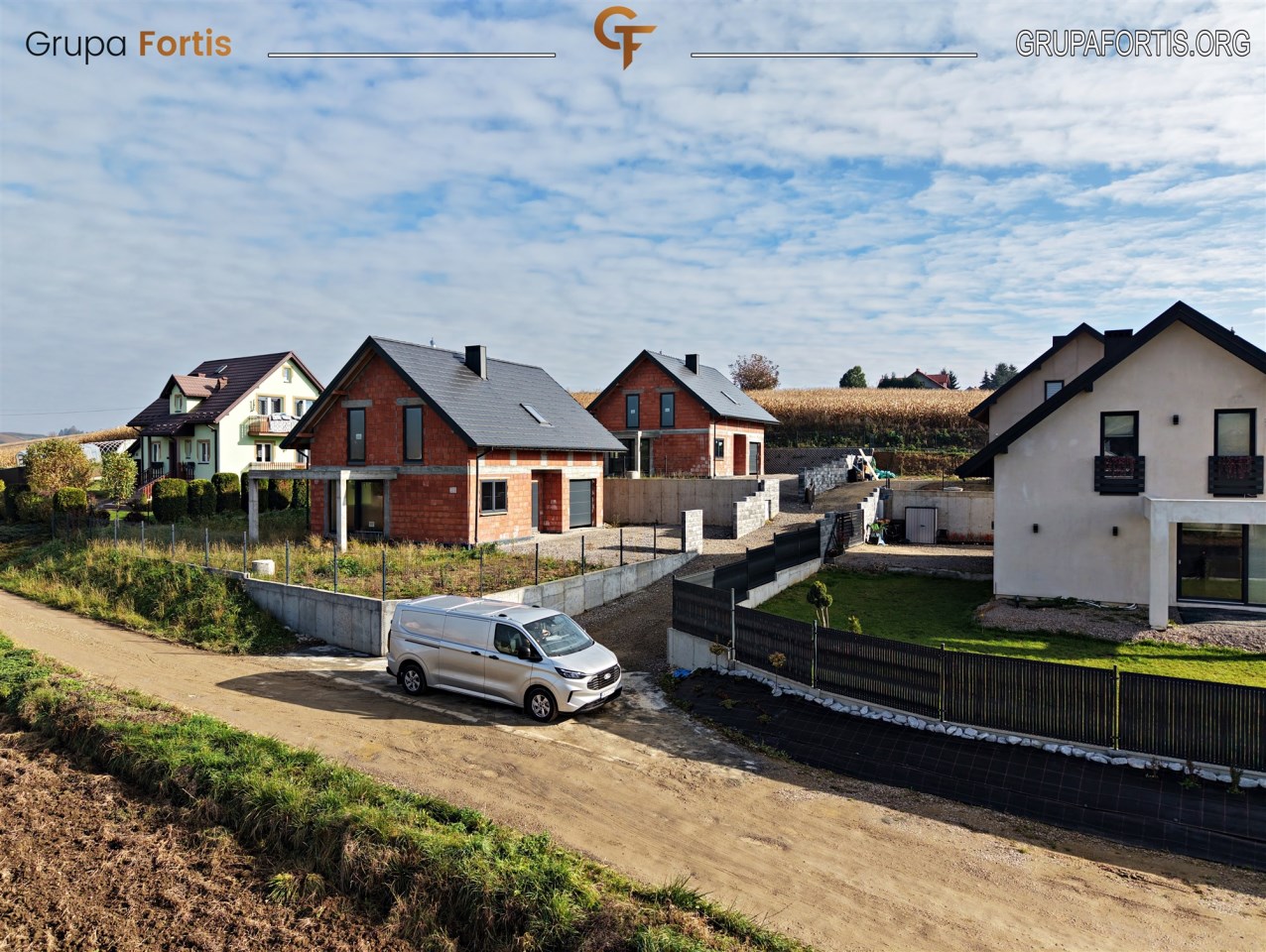 Domy położone są przy spokojnej, lokalnej drodze